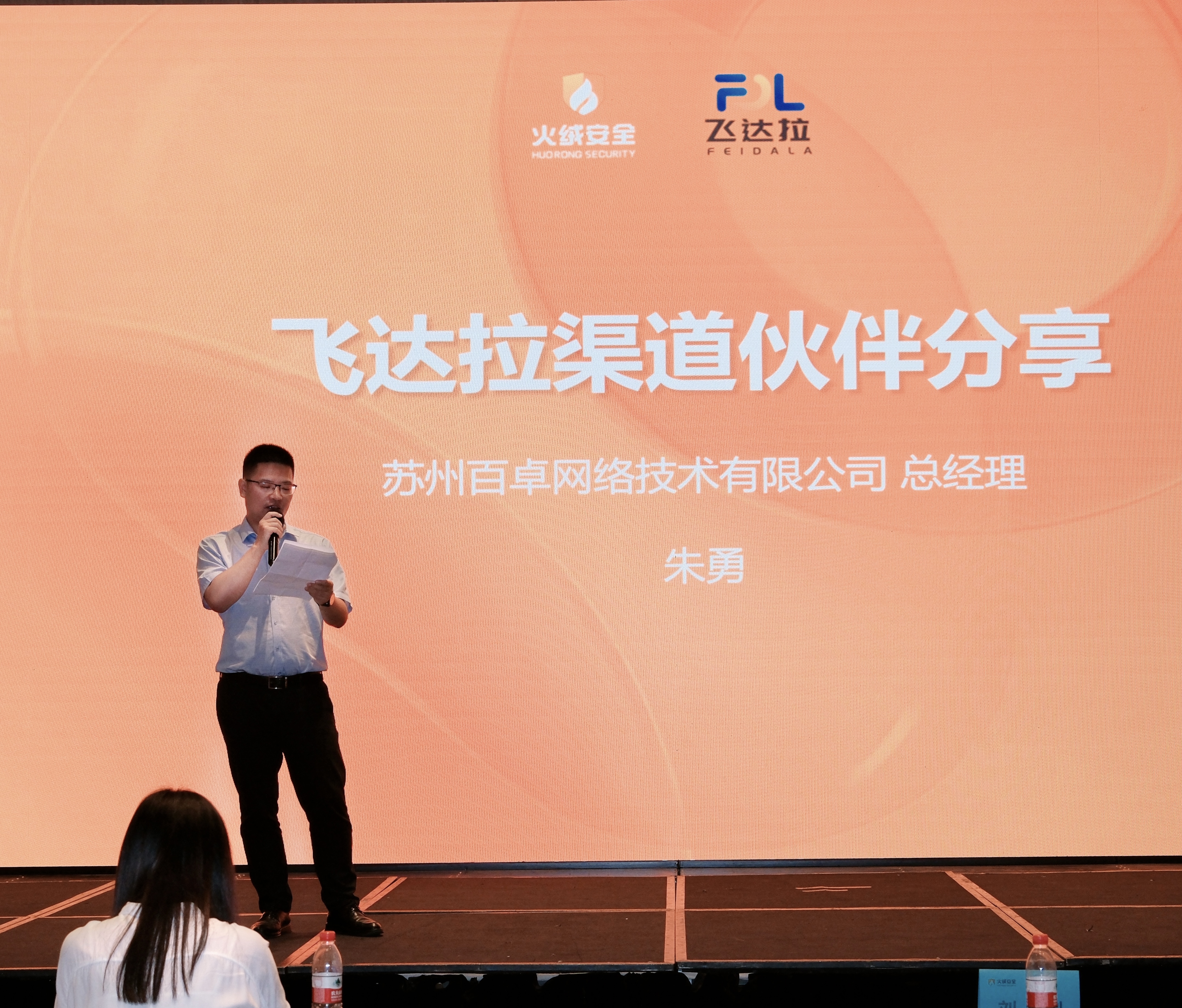 在优秀代理商分享环节,3家飞达拉渠道伙伴分别分享了与飞达拉、火绒安全合作的心得体会,展示了火绒安全产品在多元行业中应用的成功案例。这些真实且生动的案例分享,不仅为其他合作伙伴提供了借鉴,更让大家看到了三方合作所蕴含的巨大潜力。